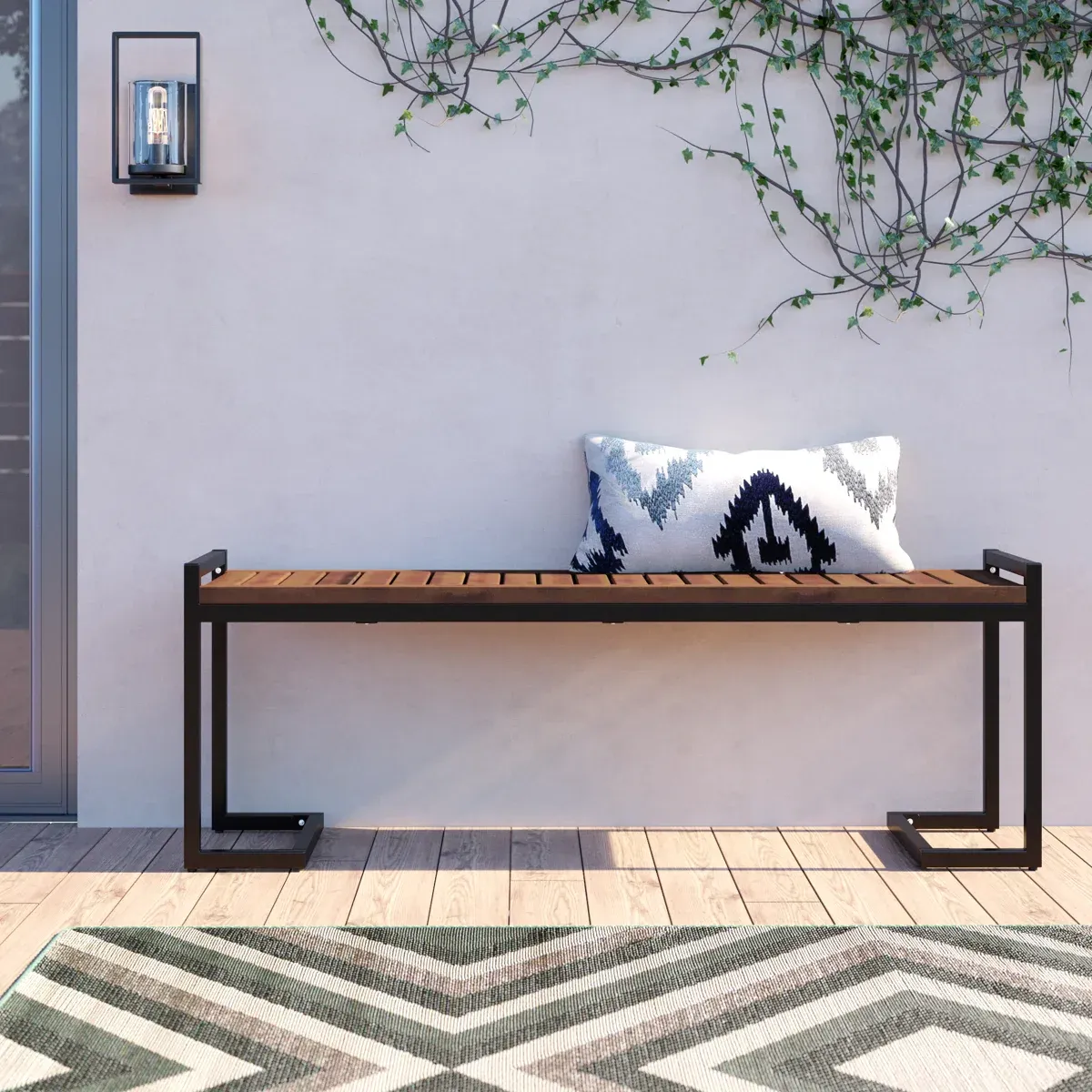 • Versatile Use: Designed for both indoor and outdoor environments, this bench is a perfect addition to your patio, garden, balcony, or entryway. Its sleek design also makes it a stylish accent piece for a modern hallway or living room.