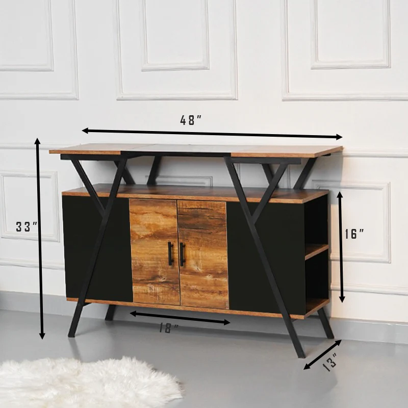 This versatile hutch is designed to enhance the utilization of your space with its innovative storage solutions. The large main tabletop serves as a convenient food prep station or a spacious work area. The two-tier hutch above provides excellent open shelving for storing kitchen essentials, displaying decor, or organizing office supplies. The robust frame ensures stability and durability, making it a long-lasting addition to your home.